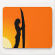Uma legal design de uma silhueta de uma surfista segurando seu surfboard contra um pôr de sol laranja brilhante. Esta praia, a design de inspiração de Summer é brilhante e vibrante e para amantes do surfe e do estilo de vida na praia em todo o mundo.