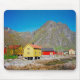 Cena costeira com montanhas e casas coloridas de madeira em Svolvaer, Ilhas Lofoten, Noruega