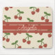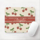 Um padrão repetitivo brincalhão de cerejas vermelhas em forma de coração com folhas verdes em fundo texturizado macio, trazendo charme de safra e um toque de doçura para qualquer estética retrô.