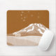 Uma ilustração de Syme hut no Pico de Fathoms, com o Monte Taranaki ao fundo. Esta design é desenhada num monocromo castanho e tem as estrelas Matariki sobre ela no céu. Um design para qualquer um que adora caminhar e vagar na Nova Zelândia.
