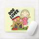 Um design adorável do amante do cão que caracteriza uma figura menina de cabelo loura e um cão orelhudo grande da vara em uma casota em t-shirt do amante do cão, bodysuits, cartões, etiquetas, sacolas, ímãs, chaveiro, e outros roupa e presentes do amante do cão.