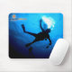 Este tapete do rato caracteriza uma imagem de um mergulhador de MERGULHADOR mostrado em silhueta contra a superfície das águas das caraíbas azuis de Cozumel.