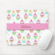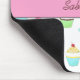 Este tapete do rato é feito em cores pastel com o rosa que é a cor principal. Tem cupcakes pequenos coloridos por todo o lado nele. Uma listra cor-de-rosa funciona através do centro com texto feito sob encomenda dentro dela.