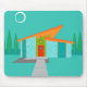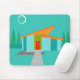 Este tapete do rato da casa dos desenhos animados da era espacial é o sonho retro de um amante vem verdadeiro. As características de design minimalistas da arte uma casa com grande, janelas da pedra do aqua do azul de pavão. Pendurando do atômico, inclinando, o telhado alaranjado, um dispositivo elétrico claro amarelo de sputnik ilumina a porta da rua. A porta da rua vermelha recessed com doorknob do starburst é deslocada belamente pelas pranchas de madeira verdes verticais da entrada exterior. Um trajeto de pedra cinzento corta através do gramado como novo, que aparece turquesa no luar. Atrás da casa, uma fileira de um alto, fina, árvores aponta ao céu de turquesa e à silhueta branca de uma Lua cheia. Quando nenhuma pessoas for visível, em uma noite como esta, os habitantes da casa kitschy são provavelmente metragem de notícia de observação interna dos astronautas.
