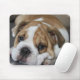 Buldogue doce que dorme com sua cabeça em suas patas.