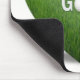 Coração da grama verde com uma bola de golfe e mensagem para o tapete do rato do amante do golfe.