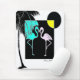 Tapete do rato do estilo do art deco com dois flamingos sob uma palmeira com o sol que shinning.