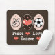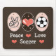 Mostre seu amor para o futebol com um símbolo de paz, um coração e uma bola de futebol na roupa bonito do futebol de Chrissy H. Estúdio, a roupa e a engrenagem para a equipe de futebol das meninas, o jogador de futebol, a mamã ou o pai do futebol, o treinador e o fã. Rosa e marrom com as estrelas e o polk pontos.