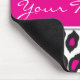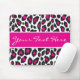 Tapete do rato do impressão do leopardo com acentos do rosa quente e área de texto. Personalize com seu nome ou texto. Faz um grande presente!
