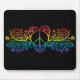 O arco-íris coloriu o sinal de paz florido em um tapete do rato preto do fundo.