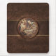 o tapete do rato elegante e elegante do steampunk em tons do marrom e do ouro, com uma textura de couro e as engrenagens pintadas intrincadas do pulso de disparo projetam no centro. 8 vendidos