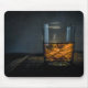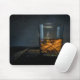 Este tapete do rato tem uma imagem de um vidro do uísque nele.