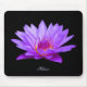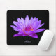 Preto Monogrammed Mousepad do lírio de água do solteiro do roxo da lavanda. Nome opcional ou monograma inicial no fundo preto. Design gráfico por Claudine Boerner.