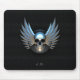 O cromo azul voou o crânio no fundo do favo de mel com tipo customizável.