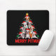Mousepad Tbull Dog Tree Xmas Light Santa Hat Christmas Merr