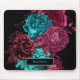 Mousepad Teal Borgonha Vermelha Elegante Flores Negras Mono