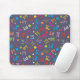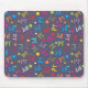 Terapia física temia musepad com pessoas em movimento. O Mousepad é azul escuro com letras brilhantes e coloridas.