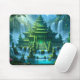 Mouse pad of a Chinese temple castle made entirely of magical green jade. Clean blue waters encircle the structure while silent jade sentinels flank the way to the castle's crystal gates. Legend has it that within the teeming jungles of the country lay hidden the castle of the benevolent, yet enigmatic, Empress Liáo Yù Yù and her mystical throne of glowing jade. Adventurers and treasure seekers, dignitaries and holy men, beggars and businessmen, had all come from the many corners of the world trying their luck to find this mythical place, but only the truly worthy were successful. Their quest was to sit on the glowing throne of jade that once belonged to the Empress, for it is said that it cured you of all your most painful and deathly ailments. To some, the throne even granted eternal life, but, woe to those whose intentions were selfish, for just as they sat on the ancient seat of power, they were never seen again... This artwork was created with ImageFX and upscaled with Leonardo.ai. Additional editing was done offline by me.
