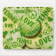 Paz, amor, texto do tênis sobre uma colagem de bolas de tênis.