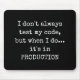Para todos os programadores. Um mouse engraçado que você pode se relacionar com "Eu nem sempre testo meu código, mas quando o faço... está na PRODUÇÃO". Excelente para um pouco de humor no escritório ou como presente de novidade para um colega nerd.