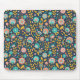Características deste design da arte popular um teste padrão floral do rosa, da laranja e da cerceta em um fundo azul escuro.