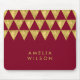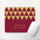 Tapete do rato elegante de Borgonha que caracteriza o teste padrão chique do triângulo do ouro do falso que você pode personalizar com seu nome.