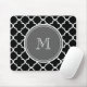 Mousepad Teste padrão preto de Quatrefoil, monograma