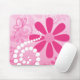 Um mouspad cor-de-rosa bonito, feminino com uma imagem de flores retros cor-de-rosa brilhantes e umas cordas de miçanga de roda para trazer para fora a menina feminino adolescente em qualquer um.