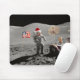Iconic Apollo 17 photo of Eugene Cernan, but now he’s rocking a classic red Santa hat with a fluffy white pom-pom on his helmet. In the visor reflection? Santa Claus himself winking right back at you.