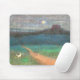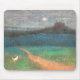 Bring a touch of quiet magic to your workspace with this unique mouse pad featuring a captivating Japanese Nihonga masterpiece. This artwork poetically evokes the sound and feel of a deep, tranquil forest, capturing a serene and mysterious scene: a lone white cat begins a midnight journey towards a distant, ancient German castle.
