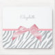 Um pente-mouse padrão de riscas de tigre de cinza de tendência embelezado com uma imagem de um arco de cetim rosado giro. Personalize adicionando o nome da sua garota favorita. Imagem impressa plana, NÃO afixada com uma fita real.