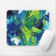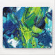 Desenho abstrato fluído de pinceladas largas de azul com um toque de verde neon brilhante que adiciona um destaque a todo o design.