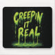 Esta imagem espirituosa e elegante apresenta a frase "CREEPIN IT REAL" em uma fonte ousada e estilizada. As letras são um verde vibrante e tóxico, projetado para parecer que estão pingando com lodo. O fundo é uma cinza escura, texturizada, com sutilezas verdes, melhorando a estética assustadora e grunhenta. Este gráfico é uma pegada brincalhona numa frase comum, fazer-o um visual perfeito para designs relacionados ao Halloween, humor, ou uma atitude divertida e rebelde.