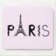 Texto de Paris com a torre Eiffel no fundo branco. © de | e ® Bigstock® - todos os direitos reservados.