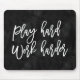 Lembre-se de trabalhar no duro todos os dias com um mouse pad "Play Duro Work Harder". Este mouse inspiracional apresenta um fundo de aquarela preta e uma tipografia moderna de script. Adicionar texto com o botão Personalizar para criar um design personalizado.