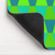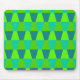 Este mouse pad tem um design de Bauhaus repetindo trapezoides em tons de azul e verde.