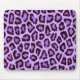 Impressão de pele de leopardo vibrante e divertida. A foto mostra a textura que a faz parecer com pelo macio ou tecido. A cor é roxa.
