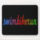 TRI design do Triathlon para o TRI atleta. Texto do roteiro do arco-íris do funcionamento da bicicleta da natação. Texto colorido e impressionante em fundir o borrão, o vermelho e o verde.