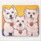 Nós três filhotes de cachorro queremos perseguir seu rato! Mousepad brilhante e feliz de Westie.