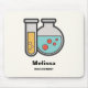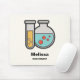 Bocal com uma ilustração fofinha de um tubo de ensaio com um líquido amarelo e um balão/copo arredondado com um líquido verde com bolhas vermelhas.