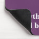 Um mousemat roxo com uma citação latina e a tradução em inglês sob a letra branca. "Tudo tem um pequeno começo" é uma citação do advogado romano, Cícero.