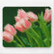 Um aglomerado de tulipas cor-de-rosa flui na brisa. O original é uma pintura em miniatura de óleo por Kathie Miller