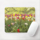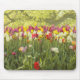 Grande flor de tulipas coloridas florescendo em primavera num parque.