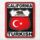 Design da Califórnia Turca, ao estilo de uma placa de rota legal americana. O texto que a Califórnia Turca está ao longo do topo e do fundo, com a bandeira do Estado da Califórnia e a bandeira da Turquia dentro. Excelente para os californianos de ascendência turca, e para ex-pais na República da Califórnia!