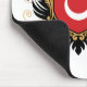 Design legal da crista com cores turcas da bandeira nacional. Substitua o texto "Turquia" com seu próprio slogan para criar um presente turco personalizado original do orgulho. Ideias personalizadas do presente: #1 pai turco, mamã, vovô, avó, tio, tia, esposa, marido, [o outro membro da família]; Orgulhoso ser turco, rochas de Turquia.