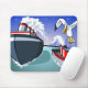Um navio de cruzeiros sae da doca e ajusta a vela. Estes pássaros das características de design colorido, corajoso, simples, barcos e o mar aberto na aventura oceânico final! Este mousepad colorido, corajoso, simples está disponível para sua personalização.