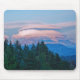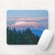O pôr do sol lança cores através da terra, e destaca as nuvens ao redor do Monte Rainier.