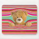 Urso-peludo castanho-branco em listras verdes e cor-de-rosa.