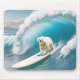 Surfe polar num prato de surfe e uma grande onda oceânica