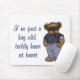 Este tapete do rato caracteriza um urso de ursinho resistente que vestem um t-shirt e jeans dos azuis marinhos com óculos de sol e um tatuagem do AMOR em seu braço. Pode olhar resistente mas é realmente macio no coração.